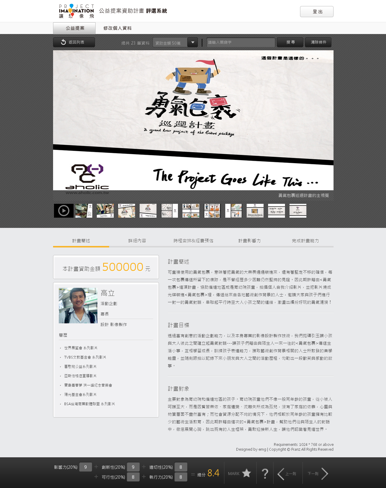 法藍瓷第一屆「讓想像飛」公益提案計畫評選系統 介面設計、…