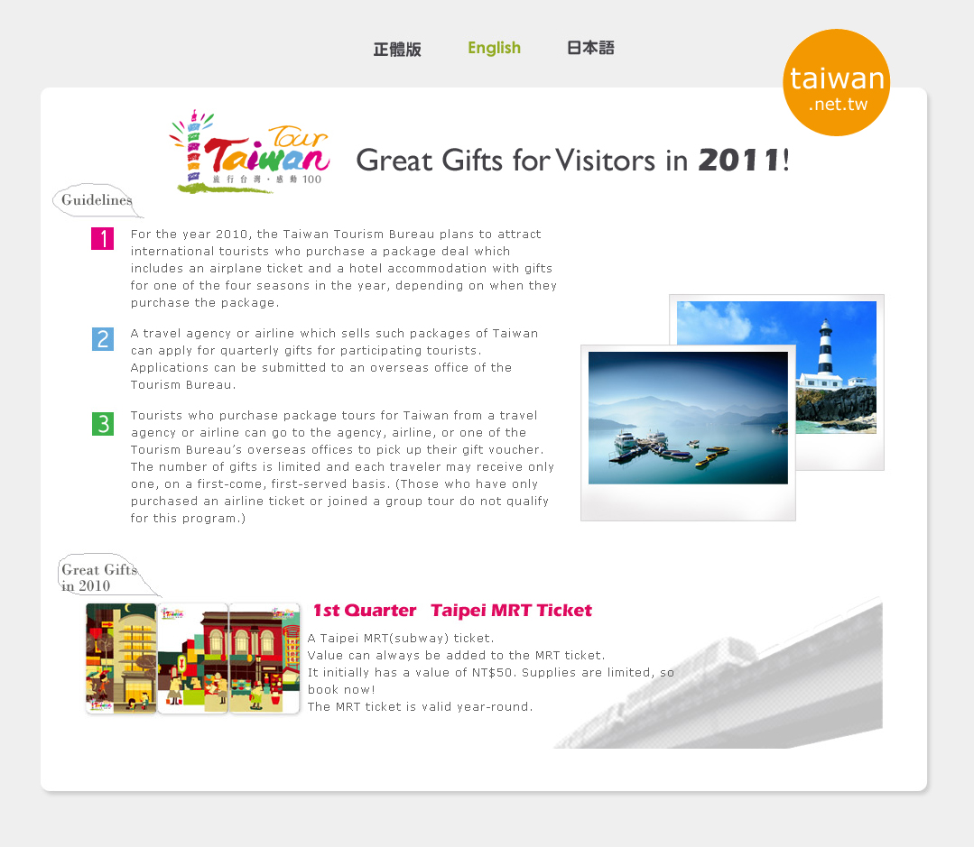 交通部觀光局英文版宣導頁面 January 2011 L…